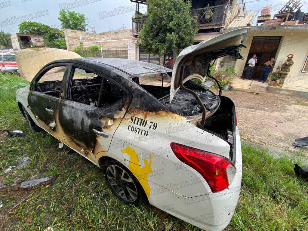 Mientras que el personal de bomberos procedía a sofocar el incendio por completo del vehículo marca Nissan, Versa, en color blanco amarillo, taxi 1281 del sitio 79, los elementos de la Policía Municipal comenzaron a investigar qué era lo que había sucedido.