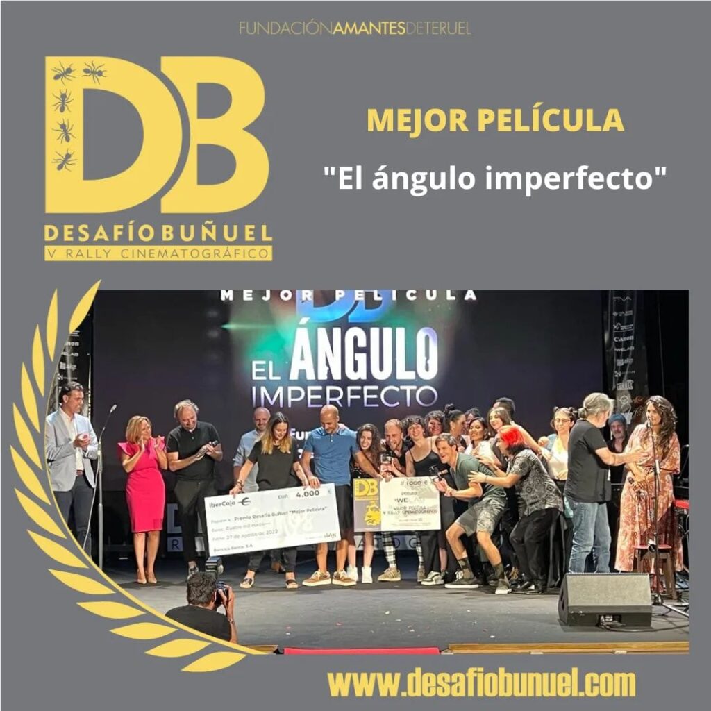 El Angulo imperfecto fue el primer corto en entregarse a los jueces y obtuvo tres de los siete premios del Desafío Buñuel, impulsado por la Fundación Amantes de Teruel. La gala de clausura fue en el Teatro Marín donde se proyectaron los cuatro cortometrajes que se rodaron en 48 horas y después la premiación.