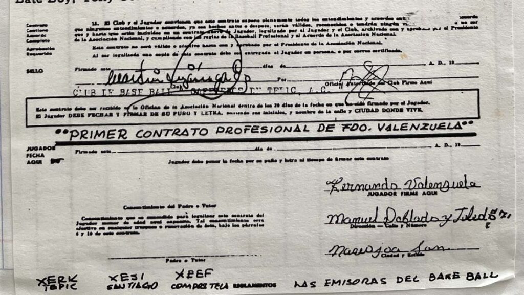 El veterano cronista Roberto Zazueta asegura que vio ese contrato enmarcado en la casa de Lizárraga. La cronista deportiva Conchita Bravo, quien trabajaba en aquellos años en las oficinas de la liga, recuerda: “A mí me tocó ver, aquí en estas oficinas, el contrato de Valenzuela… ¿pero, quién iba a pensar a dónde llegaría?”