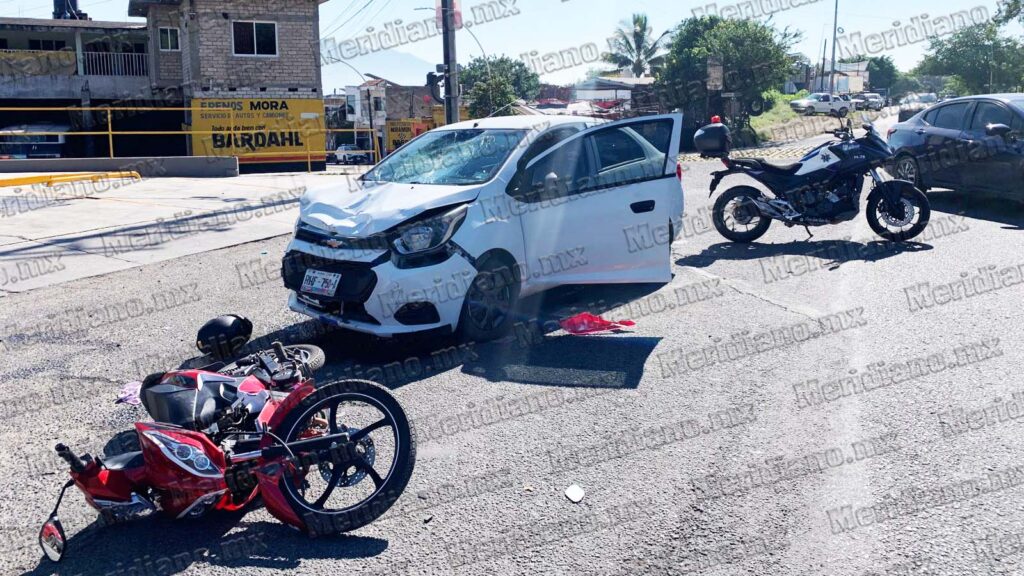 Una mujer motociclista se debate entre la vida y la muerte luego de ser arrollada por un automóvil durante la mañana de este martes en el libramiento de Tepic.