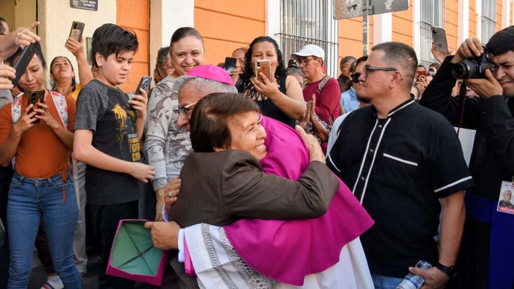 El nuevo obispo fue recibido en la Avenida México, cerca del Congreso del Estado, por el gobernador Miguel Ángel Navarro Quintero y su esposa, la presidenta del Sistema DIF Nayarit, Beatriz Estrada Martínez. El mandatario estatal, quien se identificó como católico, le dio la bienvenida a Nayarit y expresó que su labor “será para beneficio de las familias nayaritas, donde habremos de encontrar, en todo momento el fortalecimiento de nuestra fe, de nuestra paz y nuestra concordia”.