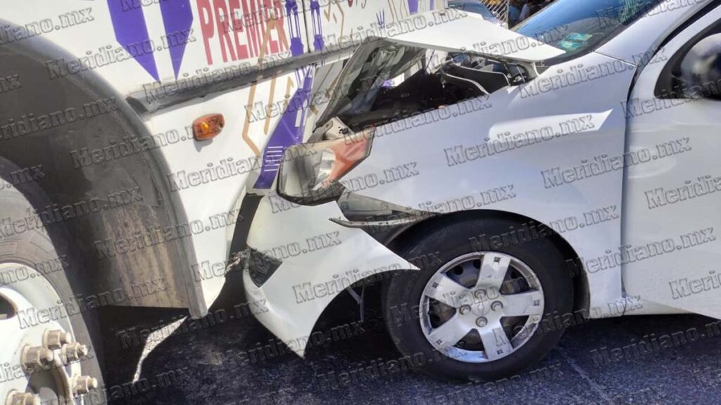 A pesar de los esfuerzos del conductor del Aveo por frenar, dejando una huella de arrastre de más de 20 metros, no logró evitar la colisión y terminó impactándose violentamente contra la pesada unidad. El vehículo compacto quedó destrozado en la parte frontal tras el brutal impacto.