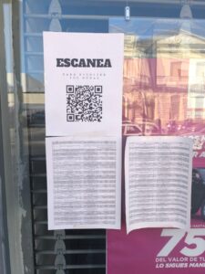 Afuera de las sucursales se forma un pequeño ritual cotidiano, quien llega encuentra un código QR pegado en la pared, una hoja plastificada que ya ha sobrevivido al sol y a la desesperación. “Con eso puede hacer su pago”, indica un trabajador, señalando el cuadrado negro y blanco como si fuera un salvavidas.