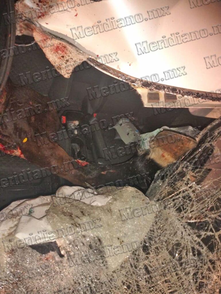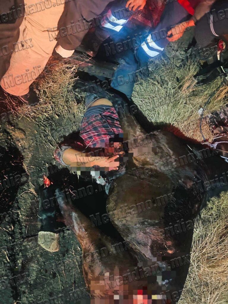 En la escena del accidente quedaron los dos caballos, sin vida. A escasos metros del lugar fue localizado el vehículo presuntamente responsable, un automóvil compacto abandonado que presentaba huellas de choque y en cuyo interior se encontró la extremidad de uno de los equinos, amputada por el impacto.