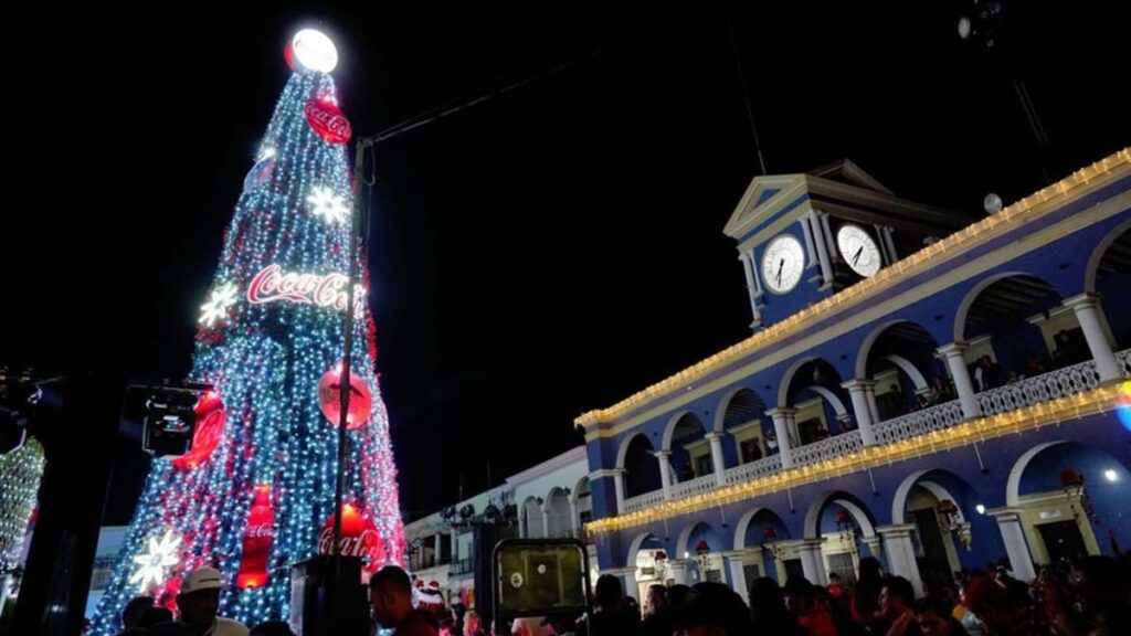La plaza principal en Santiago Ixcuintla se llenó de luces, colores y espíritu decembrino con el encendido del emblemático árbol navideño de la Coca-Cola. Se trata del primer árbol que se instala en ese municipio por parte de la empresa refresquera, siendo donado por el exgobernador Antonio Echevarría Domínguez, originario del lugar.