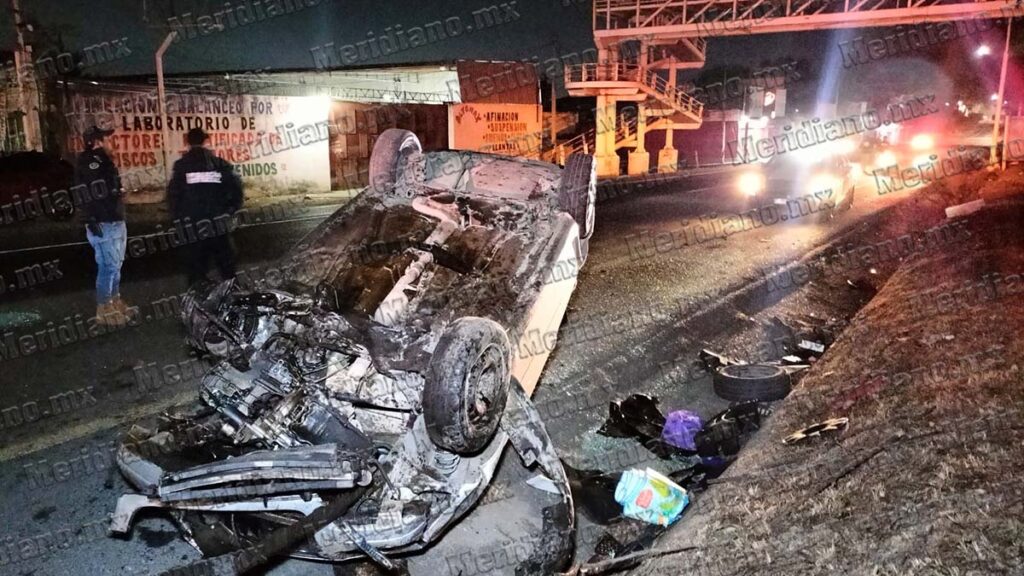 Un aparatoso accidente ocurrido la madrugada de este viernes dejó como saldo un vehículo reducido a chatarra en el libramiento carretero de Tepic.