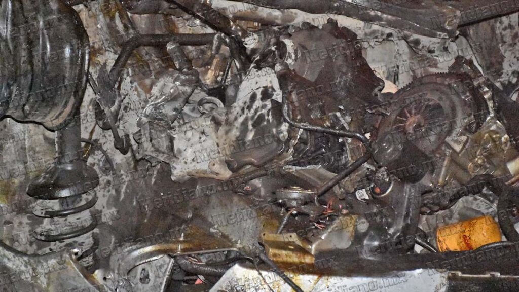 El vehículo terminó destrozado: perdió un neumático y la parte del cárter y del motor quedó completamente despedazado.