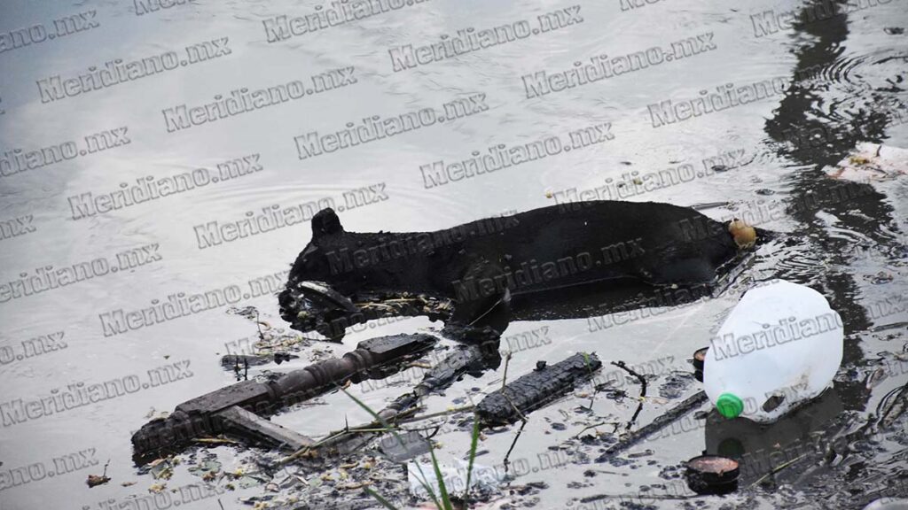 Paralelamente, elementos de Protección Civil municipal llevaron a cabo el rescate de los cuerpos de los perros del interior del canal.