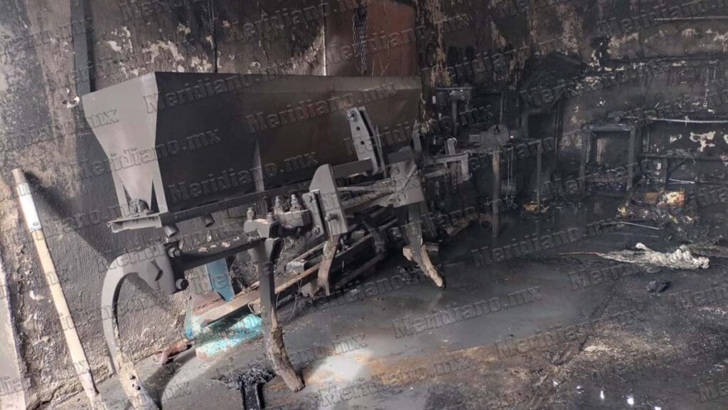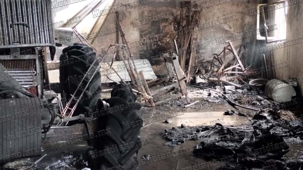Una bodega que almacenaba un tractor y maquinaria fue consumida por un fuerte incendio ayer viernes por la tarde en la localidad de Aquiles Serdán, municipio de Xalisco.