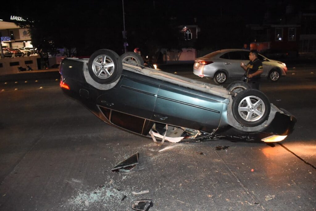 Un joven de 21 años de edad protagonizó un aparatoso accidente la noche de este lunes en la colonia Los Fresnos, en la ciudad de Tepic, luego de perder el control de su vehículo y volcar de manera espectacular.