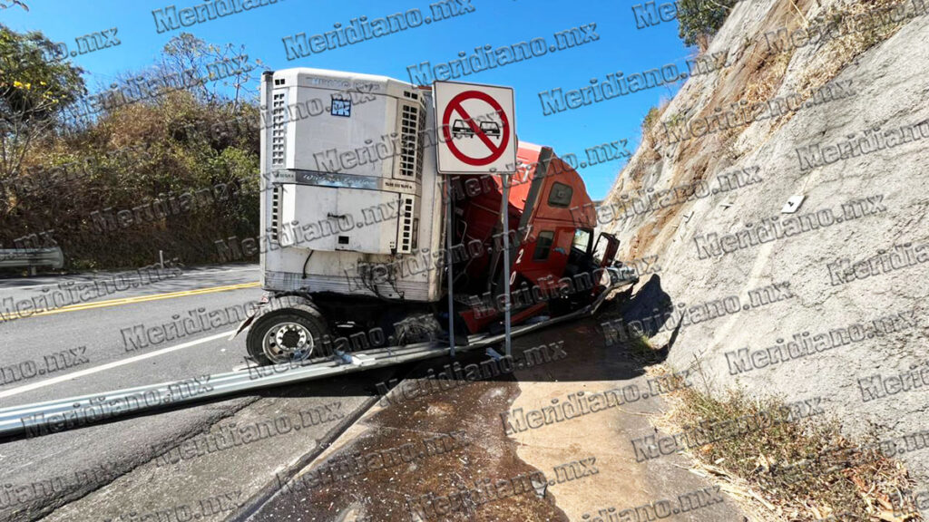 Tras el daño, el operador perdió el control del tractocamión, que avanzó varios metros hasta caer a la cuneta lateral. En un intento por reincorporarse a la vía, el tráiler cruzó hacia los carriles contrarios e impactó de lleno contra la barrera metálica de contención la cual la desprendió, lo que ocasionó el desprendimiento del eje delantero y una considerable fuga de combustible. Gracias a una acción audaz, el chofer logró torcer el volante, evitando golpear de frente la cabina contra el paredón de un cerro, lo que, sin duda, le salvó la vida.