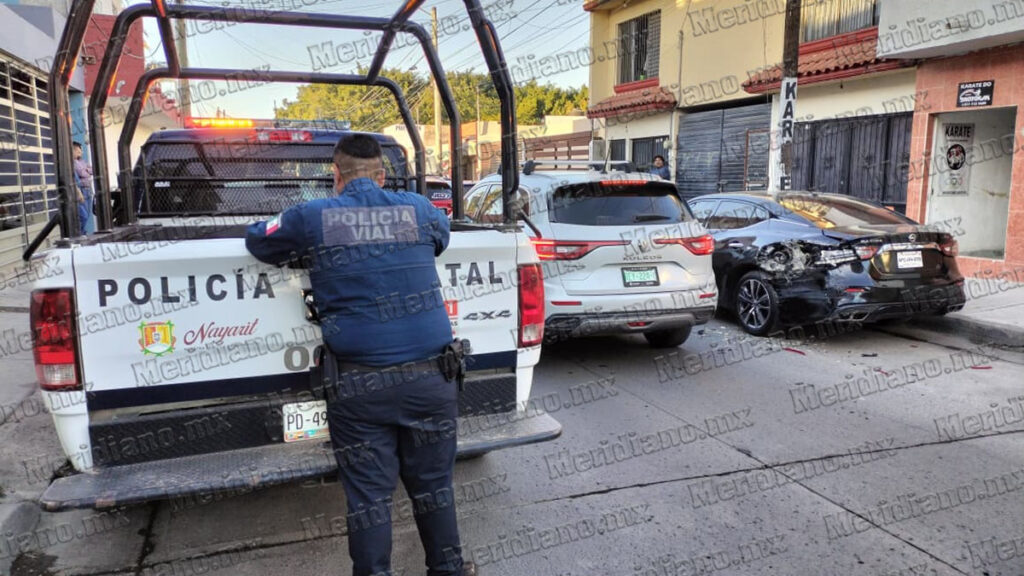 Un imprudente conductor destrozó tres vehículos la tarde de este viernes en la colonia Aviación de la ciudad de Tepic, luego de circular a exceso de velocidad y perder el control de su unidad.
