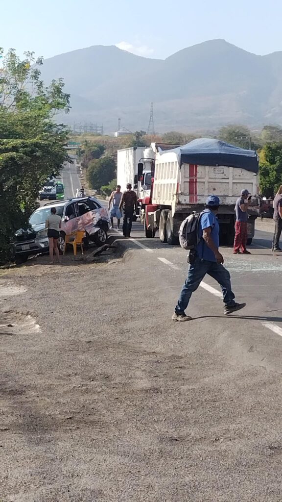 De acuerdo con los primeros reportes, una pesada unidad tipo góndola impactó contra una camioneta en el que viajaban cinco personas: dos adultos y tres menores de edad. Tras el fuerte golpe, el vehículo particular quedó severamente dañado y en una posición que lo hacía parecer a punto de volcar.
