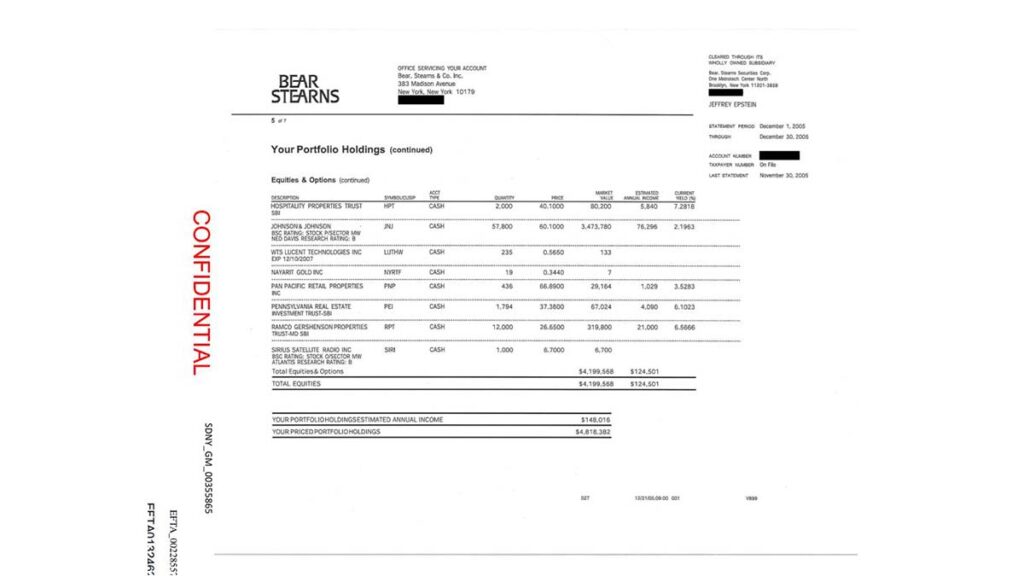 El Departamento de Justicia de Estados Unidos ha liberado miles de documentos financieros recuperados tras la caída del magnate estadounidense Jeffrey Epstein. Entre este material aparece una inversión inusual: 19 acciones en una pequeña empresa minera que buscaba oro en Nayarit.