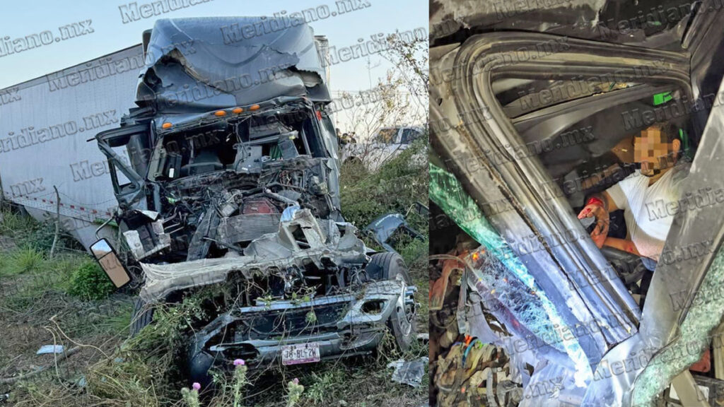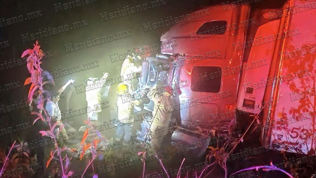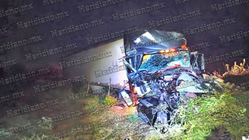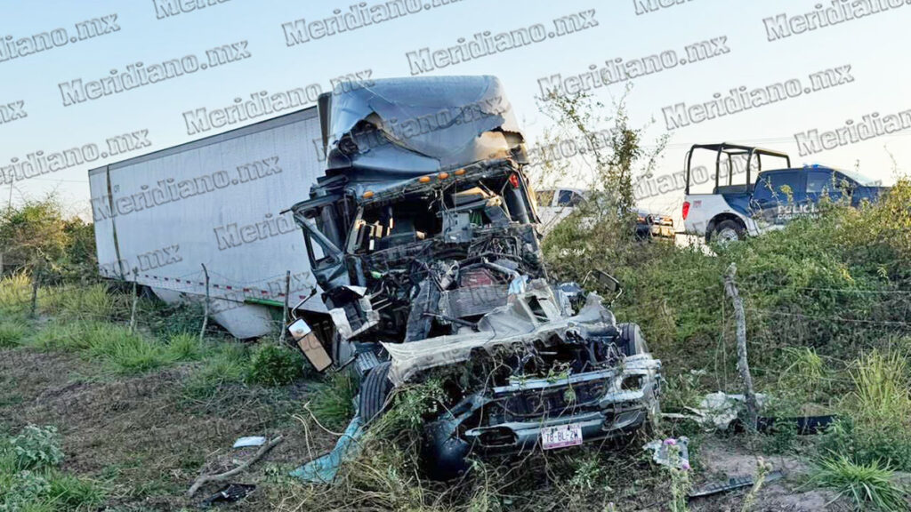 En el lugar de los hechos, las autoridades localizaron un tractocamión con caja fuera de la superficie de rodamiento. La unidad presentaba una huella de choque de gran magnitud que abarcaba desde la parte frontal hasta la cabina, donde el conductor permanecía atrapado entre el metal retorcido.
