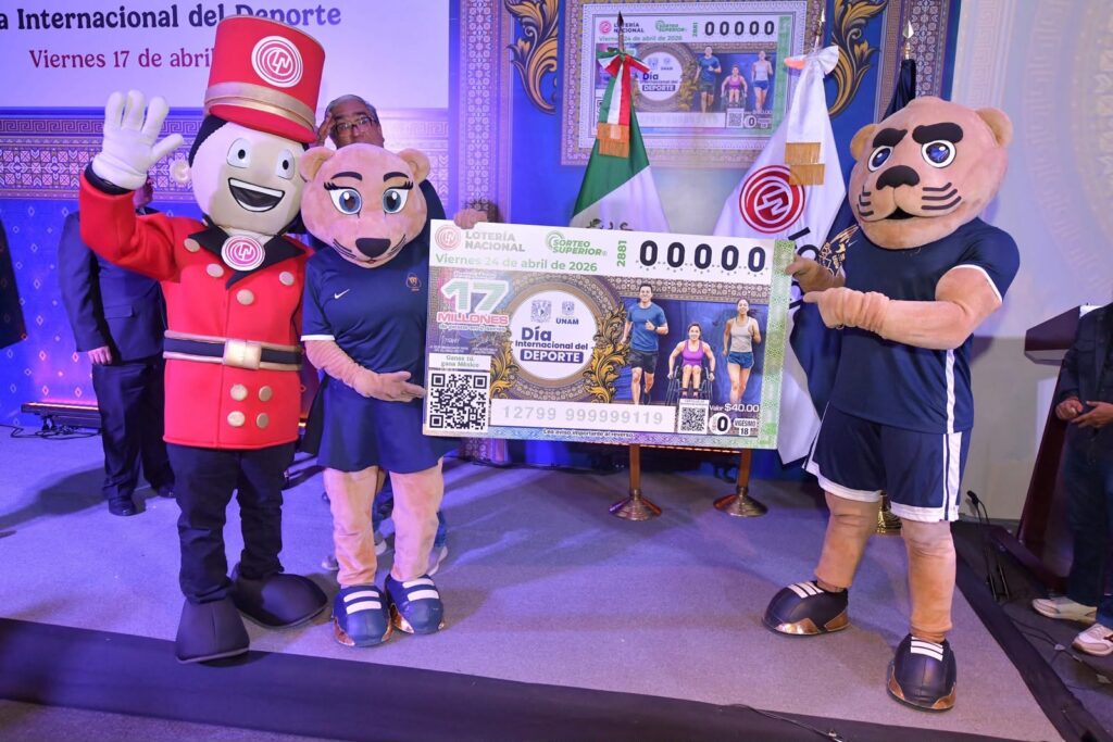 Con motivo del Día Internacional del Deporte para el Desarrollo y la Paz, Olivia Salomón, directora general de Lotería Nacional; Fernando Macedo Chagolla, secretario de Servicio y Atención a la Comunidad Universitaria de la UNAM; y Dionisio A. Meade, presidente del Consejo Directivo de Fundación UNAM, develaron el billete del Sorteo Superior No. 2881, diseñado para destacar esta efeméride que nos recuerda el papel fundamental del deporte y la actividad física en la promoción de los derechos humanos, el desarrollo económico y social, y la paz mundial.